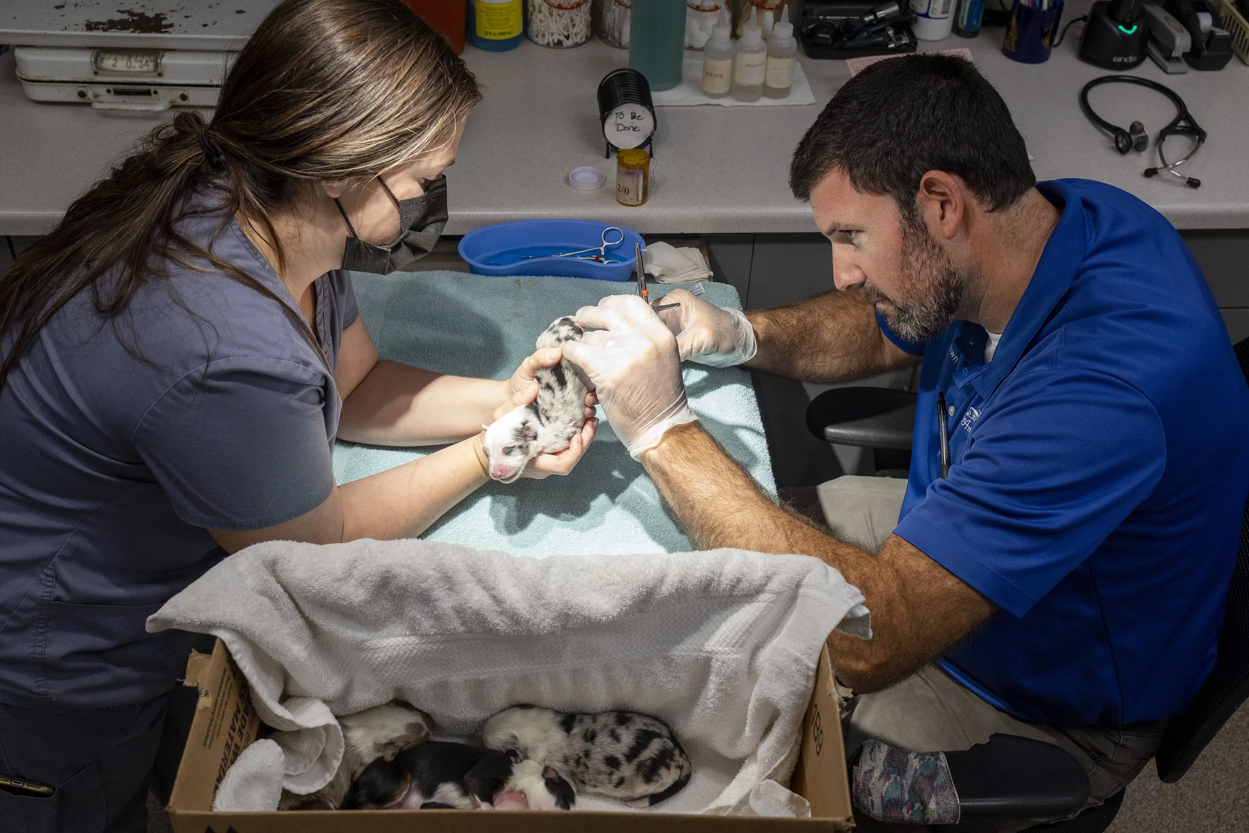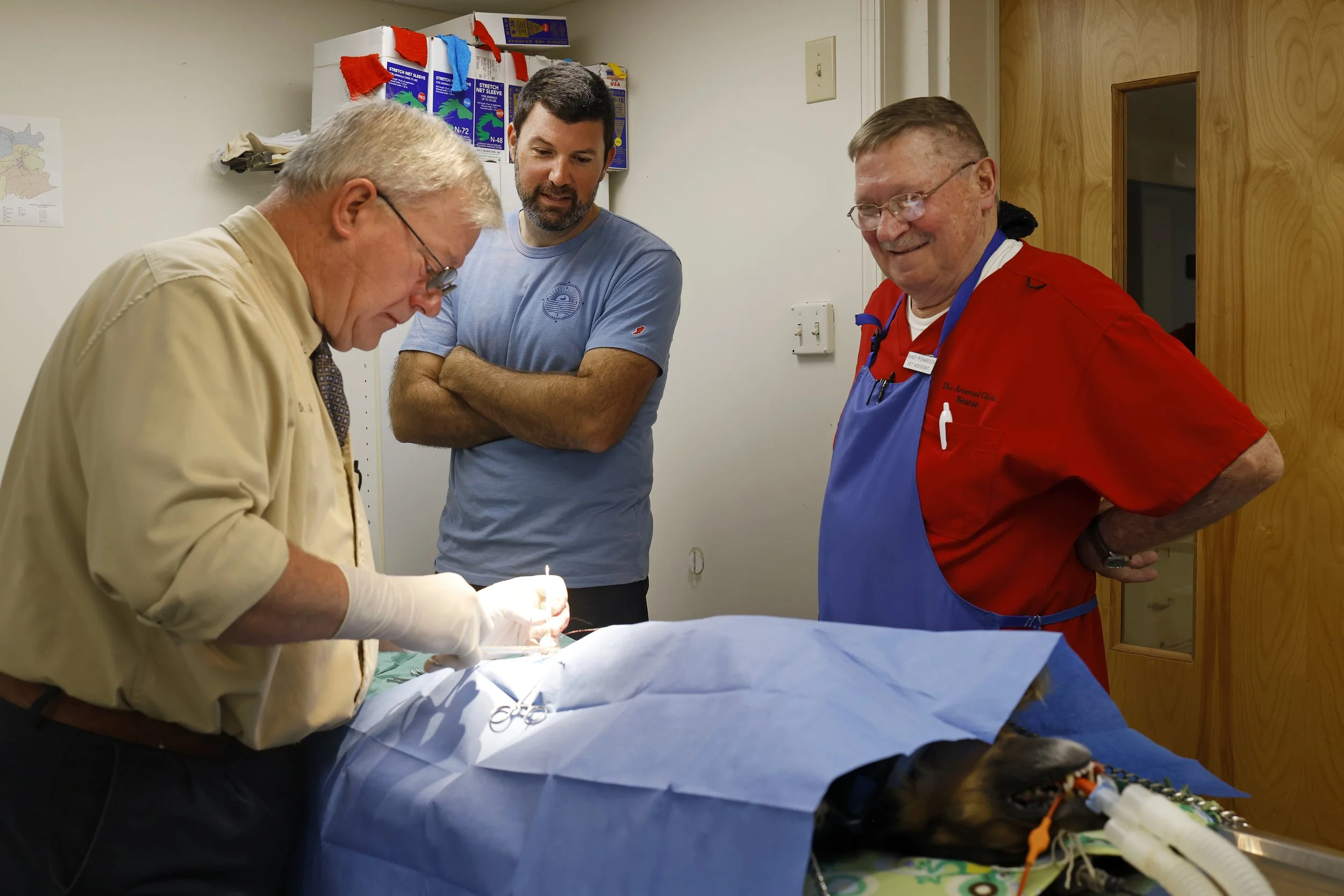 One was Kylo, a black labradoodle who needed surgery for a twisted stomach. After doing the surgery, Brown kept Kylo overnight to monitor his recovery. When Brown arrived at the clinic the following morning, Kylo had died. As he does with all the patients he loses, Brown signed a sympathy card for Kylo’s family.